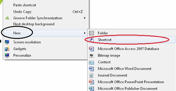 - Klik kanan pada desktop pilih new -> klik Shortcu.